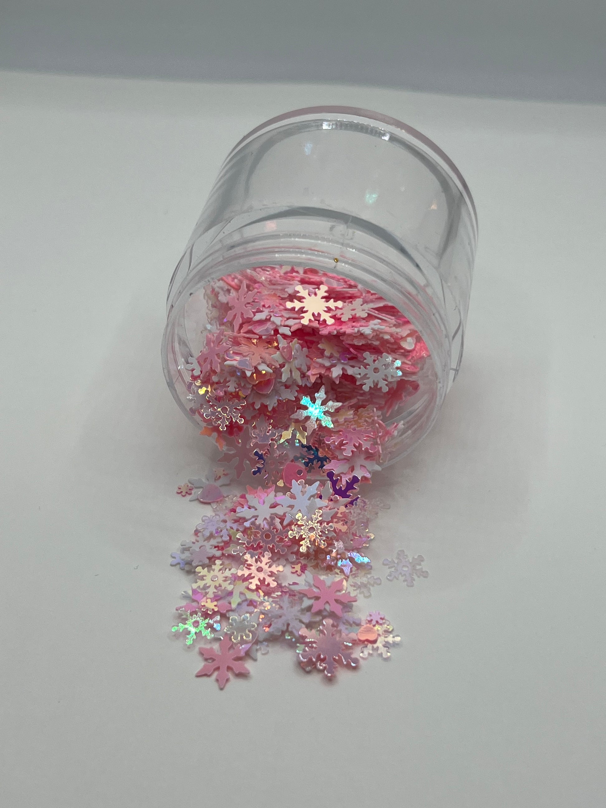 Give your creations a soft and dreamy winter look with this Pink Snowflake Mix, featuring pastel snowflakes in glowing holographic finishes.